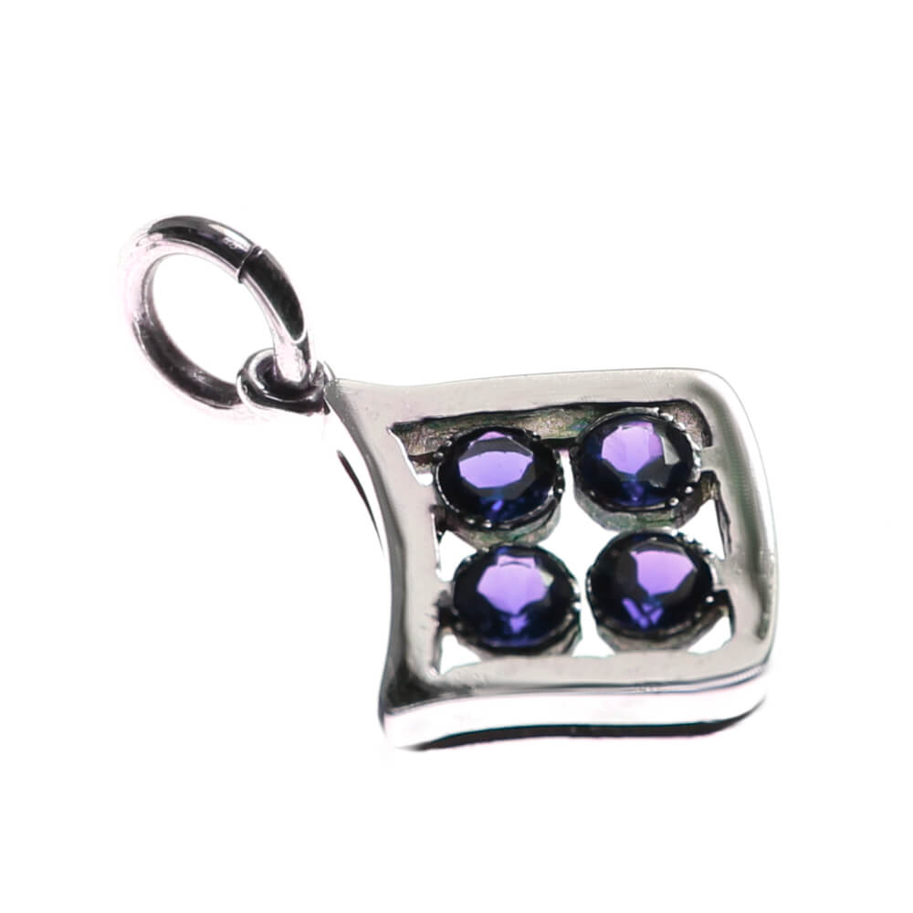 Pingente do "Quadradinho" em prata 950 com pedra Iolita (roxa) - 2,5x1,5 cm